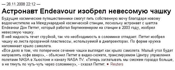 В агентстве "Рейтерс", замечает Alexei Undolsky, тоже пьют что-то очень своеобразное. Хотя и не из невесомых чашек. И без соломинки.