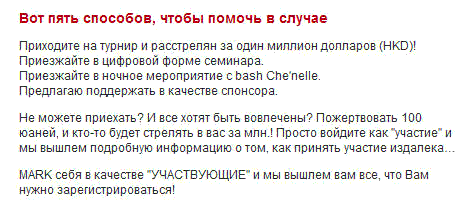 И как бы в знак того, что они собираются завоевать весь мир, ужасается Юрий, китайцы делают вот такие недвусмысленные предложения.