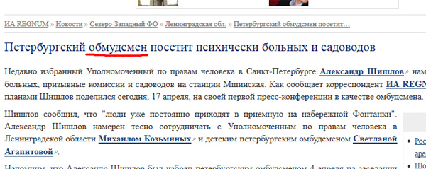 Да в общем, там и не описка, считает Enkryptor. Он действительно обмудсмен, а не омбудсмен.