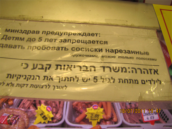 По сосискам я думаю это связано с другим обычаем в Израиле: возможно нарезанная сосиска дает плохие ассоциации
