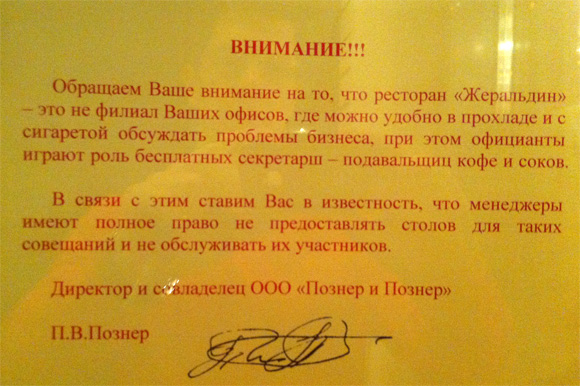 Я вот претензии Познеров что-то недопонял. Их не устраивает, что к ним приходят люди пообедать с кофейком, а заодно какие-то свои вопросы обсудить? Или обсуждать можно, но только ограниченные темы?