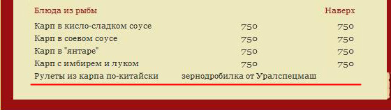 Фарид прислал любопытное меню из одного китайского ресторанчика. У рулетов из карпа особенно интересный выход. Специфический.