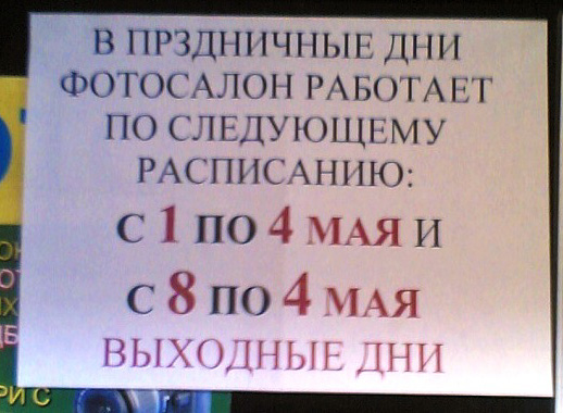 В фотосалоне майские праздники отметили еще в процессе написания объявления, замечает Радик.