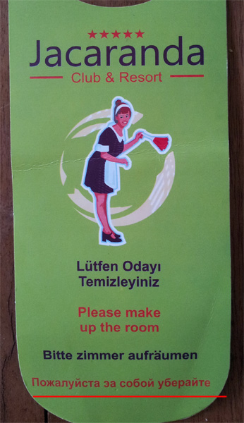 RiMET прислал очень грустную табличку. А вы, русские свиньи, за собой убирайте сами, предлагают в этом отеле.