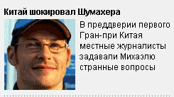 Да уж, кошмар. Мы тоже первый раз видим, чтобы Китай настолько шокировал Шумахера, что он превратился в Вильнева!