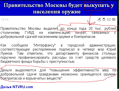 - Вы интересуетесь, что именно можно выкупить на 20 тыс рублей, что составляет примерно 670 долларов? - добродушно спросил у журналистов начальник столичного ГУВД. - На самом деле, конечно, больше пары газовых пистолетов и не выкупить. Но вы же понимаете, кем был сделан этот странный починок... У них починок, а нам - отдувайся. Но мы тоже не лыком шиты! На эти деньги будет приобретена табельная базука - одна штука, - а с ее помощью мы планируем уговорить граждан добровольно сдать оружие, боеприпасы и взрывчатые вещества, включая газовые плиты. Мы думаем, что никто не откажется это сделать, взглянув прямо в глаза базуке.