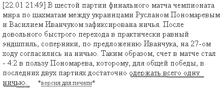 Майкл не понимает, что значит "одержать ничью". Он знает "одержать победу" и "получить поражение по всей роже". А "одержать ничью" он не знает. Он знает "свести к ничьей". То есть и рыбку съесть, и на лошадке покататься. Однако на Лента.Ру знают, как можно одержать ничью. Примерно так же, как вырвать поражение из лап соперника.