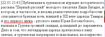 Однако Лента.Ру радует нас не только одержанной ничьей. Александр Малюков сообщает, что царица Тамара, по мнению Ленты.Ру, была мужиком: