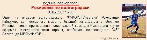 При чем тут водное поло, спросите вы? Ну как это! Казахстан уже давно решил осваивать свои водные пространства, поэтому создал команду ватерполистов. А что главное для ватерполистов? Умение быстро-быстро работать ногами, чтобы не утопнуть, когда руки заняты мячом. А кто лучше всего работает ногами, да еще и с мячиком не на "вы"? Гайдуков, однозначно! Вот пускай и переучивается. Чай, не маленький.