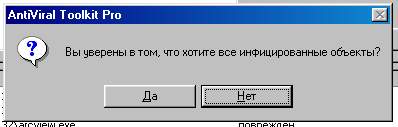 Вот так вот! Вопрос поставлен прямо в лоб, и отвечать на него придется честно и открыто. Вы действительно уверены в том, что хотите все инфицированные объекты? А неинфицированные? А те объекты, которые шляются за окном туда-сюда, не хотите? Точно? Вы уверены?