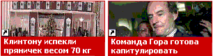 Гор-то оказался - слабак-слабаком. Капитулирен перед каким-то пряничком в 70 кг. И это дело еще не дошло до кнута! А пряничек придется есть самому Клинтону. Один он вряд ли справится, значит придется на помощь звать какую-нибудь практикантку. И неудивительно, если ее платье при этом окажется заляпанным пряничком. Потому что надо помнить старую поговорку: "Когда ешь пряничек - снимай штаны".