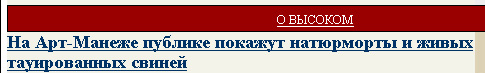 По-моему, это просто потрясающе: натюрморты и живые тауированные свиньи. Я бы все отдал, чтобы посмотреть на тауированных свиней. Что? Не знаете, что это такое? Тауэр - это башня по-английски. Поэтому тауированные свиньи - это хрюшки, которые делают стойку, как суслик, а при этом забавно вертят ушками и хвостиками. Народ, завидев это демоническое зрелище, со страшной силой хохочет и падает лицом прямо в натюрморты.