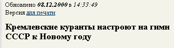 Что сделают с кремлевскими курантами - я так и не понял. Было бы понятно, если их настроят на гимн СССР. А вот за что их настроют - не очень понятно. Видать, новостист в школе не изучал эту... как ее... орфоэпию и не знал, что настроят надо писать настроют... Ой, я что-то запутался. Короче говоря, лучше бы он написал просто: кремлевские куранты заставют берендеть по-старому. И все дела.