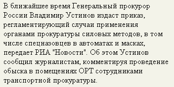 Ура-а-а-а, наконец-то прокуратура перестанет применять этих жутких спецназовцев, одетых в автоматы. Ладно еще, когда спецназовцы одеваются в автоматы с газированной водой: в этом случае вас просто водичкой сбрызнут, а если повезет, то и с сиропом, но когда эти негодяи одеваются в телефонные автоматы, то можно весьма чувствительно получить трубкой по голове. А если не повезет, то и в другое место.