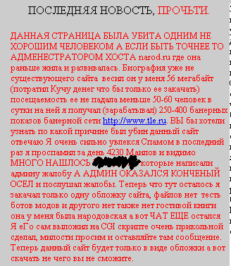 Честно говоря, я просто плакал весь, когда читал этот текст. Парень так старался, писал 4230 писем, а его сайт после этого взяли и грохнули. Нет, все-таки админ narod.ru - негодяй, однозначно!