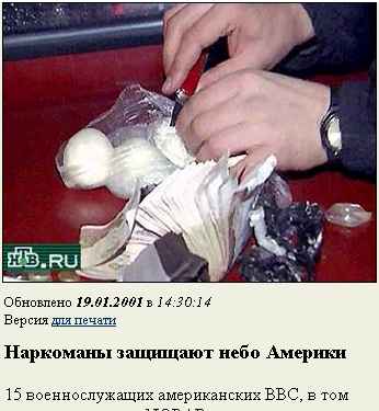 Причем сенсация заключается не в том, что 15 американских летчиков - наркоманы, а в том, что на сопровождающем это дело снимке отчетливо видны русские деньги! А это значит, что военнослужащие передают нашим американские военные секреты, получают наши законные рублики, меняют их на свою валюту и покупают после этого свои чертовы наркотики! Говорят, кстати, что наши военные получили наконец секрет "невидимости" одного знаменитого американского самолета. Выяснилось, что если в момент пролета над радарами противника спрятать башку глубоко в комбинезон, то тебя черта с два обнаружат! Один наш летчик попытался осуществить этот хитрый маневр, но врезался в стену сарая бабы Шуры, напугав до поросячьего визга всех кур, поэтому есть подозрение, что американские летчики дурят нашего брата. Но, как сообщил нашему корреспонденту капитан Наливайко, американцам это даром не пройдет, потому что деньги, которыми им заплатили, неденоминированные. Так что на всю эту кучу денег они купят всего-навсего одну пачку "Дымка". Правда, говорят, что он ничем не уступает их хваленой марихуане.