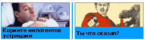 Что сказал? Что слышал! Импотентов, говорю, надо устрицами кормить! Зачем? А устрицы так забавно пищат, и несчастные импотенты забывают обо всех своих невзгодах. В народе, кстати, устрицам тоже не доверяют. Вон, одна девушка жениха перед первой брачной ночью накормила девятью устрицами, а сработало всего четыре....