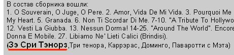 Кирилл Дмитриев хотел кассетку прикупить. "Три тенора на Плющихе" называется. Полез в каталог: