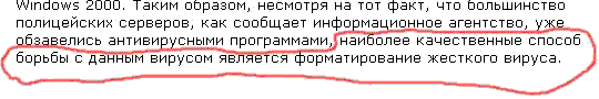 И действительно! Жесткого вируса надо форматировать, однозначно! Мягкого - стирать губкой со стола! Аморфного - дезориентировать в пространстве. Липучего - бросить на съедение мухам. Сладкого - вылизывать вместе с программным кодом. И так далее. Не надо доверять всяким антивирусным программам! Борьба с вирусами - исключительно в наших руках!