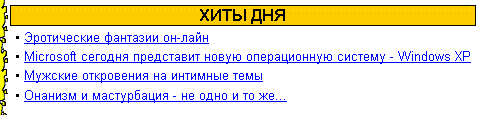 Ведь баннизмы - они никогда не обманут! Посмотрите, насколько четко подобраны ссылки! Ведь онанизм и мастурбация - это не одно и то же. Онанизм - это установка Windows XP. А мастурбация - это попытки заставить ее работать так, как надо. Зато можно эротически помечтать о чем-то более устойчивом. Я имею в виду, конечно, операционную систему.