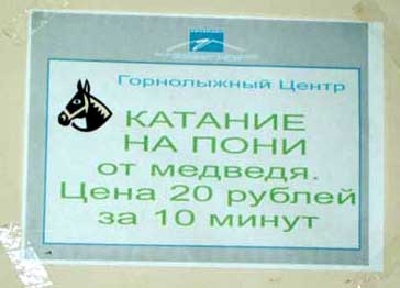 По-моему, очень мило. Катание от медведя. За 30 рублей можно сначала на медведя, потом от медведя. За 40 - на медведя, в репу медведю, после чего на дерево. За 50 - катание на медведе. Недолго. Сколько выдержит медведь. Затем за 100 рублей - избавление от медведя с помощью пони... (подумав) А вчера медведи были очень грозные. Но вчера. Сегодня их и за 20 рублей не расшевелишь. Пони от такого медведя не бегают быстрой рысью, а шатаются тихой сапой. Никакого удовольствия.