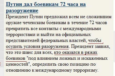 Пока не очень понятно, сумеют ли все боевики за 72 часа осудить условия разоружения, но независимые наблюдатели считают, что те, кто ряжей не вышел - могут и успеть. Лишь бы ценности не исказились до полной потери товарного вида. Ведь фиг их тогда продашь!