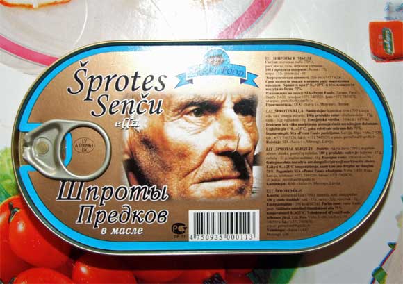 Там, конечно, ошибка на этикетке. Судя по изможденному лицу с рыболовным крючком в носу, эти шпроты не предков, а из предков. Видать, у производителей перестали ловиться шпроты, и они, как настоящие профессионалы, заменили их предками, которых также пришлось вылавливать на крючок. Бедный дидусь. За носик да в банку - не каждому пожелаешь такую старость!