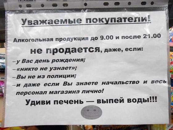 Объявлению о "непродаже алкоголя" - однозначно зачёт!