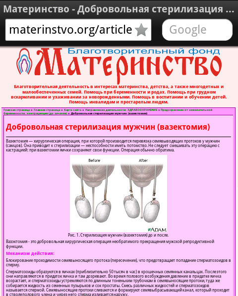 А я, вот, по последнему баннизму не понял, вазектомия - это обратимая операция или нет... А то до срташной картинки написано, что обычно обратима, а после - "операция необратимого прекращения репродуктивной функции".