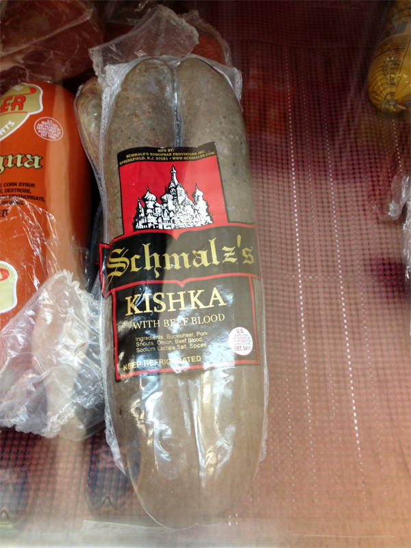 Яблочка предлагает насладиться натуральной русской колбасой из русского магазинчика в Америке. А что, кишка с говяжьей кровью - ну просто пальчики оближешь! В России все, кто сумел убежать от медведей с балалайкой, только такую и едят.