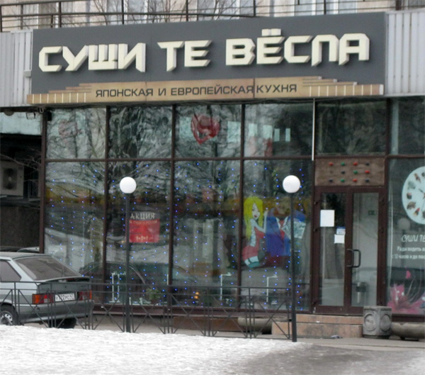 Всегда удивительно, замечает Сергей, когда персонажи, ни черта не знающие по-русски, пытаются еще и писать английские названия. Получается очень смешно.