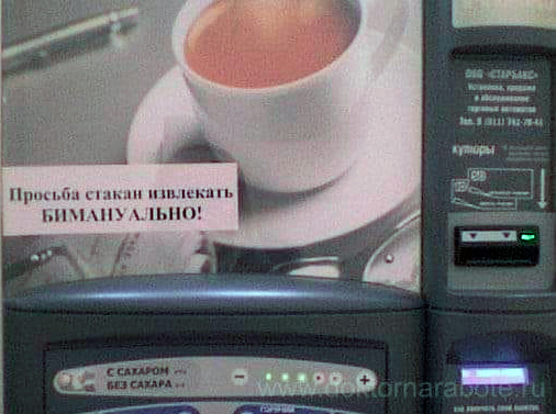 Бимануальный стакан хорош. Интересно, где это объявление висит.