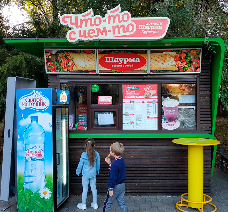 А ведь и правда, замечает Михаил, когда ты покупаешь шаурму - это действительно именно что-то и именно с чем-то. Тут главное - не знать, с чем именно!