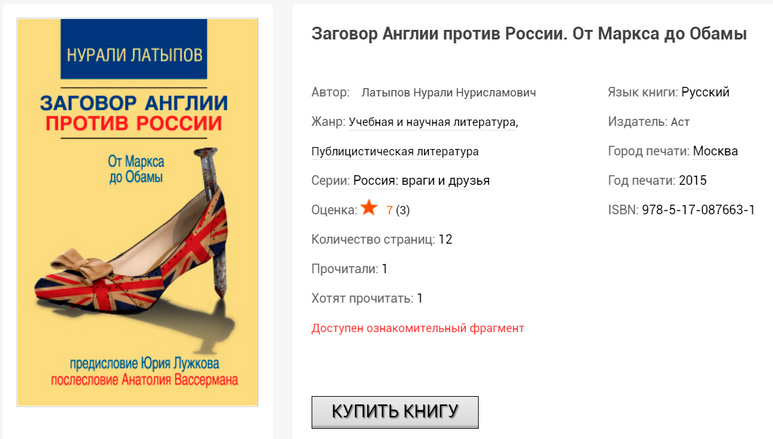 Михаил настоятельно рекомендует почитать книжку Нурали Латыпова о том, как англичанка гадила России с помощью двух своих самых главных туманных альбионцев - Карла Маркса и Барака Обамы. Ну и предисловие знатного политолога Юрия Лужкова тоже много чего стоит. Про послесловие Вассермана я вообще молчу. Его можно отдельно читать, как песню в камне.