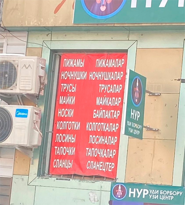 В Сухуми, в советские времена, все надписи были на трёх языках, очень доставляло, заимствованные из русского слова по-абхазски начинались на А, а по-грузински — заканчивались на И. Были забавные исключения, например, киоск писался "киоски" и "алариок" (ларёк)