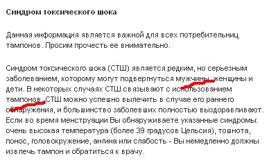 Если вы мужчина, предупреждает Алексей, бойтесь токсического шока, вызванного применением тампонов! Да-да, заболевание редкое, но опасность есть!