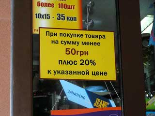 Ялтинский магазин "Полцены", рассказал Eli, предлагает своим покупателям ту самую "прогрессивную скидку", о которой я писал в "Арии князя Игоря". Так что жизнь обогнала самую светлую мечту.
