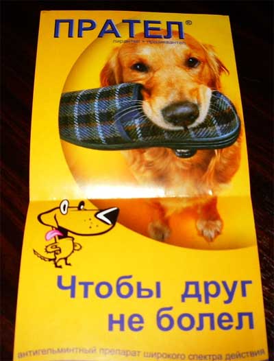 Александр прислал нам рекламу нового глистогонного препарата для животных.