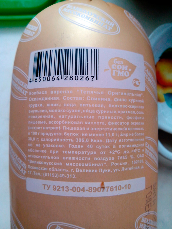 "Все в порядке, успокаивает Алексей. Колбаса "телячья" настолько оригинальная, что никакой телятины в ней не содержится ни грамма."