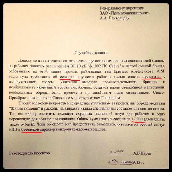 Понравилась служебная записка. Беру идею на вооружение. Хороший способ отмыть бабла на мелкие производственные нужды.