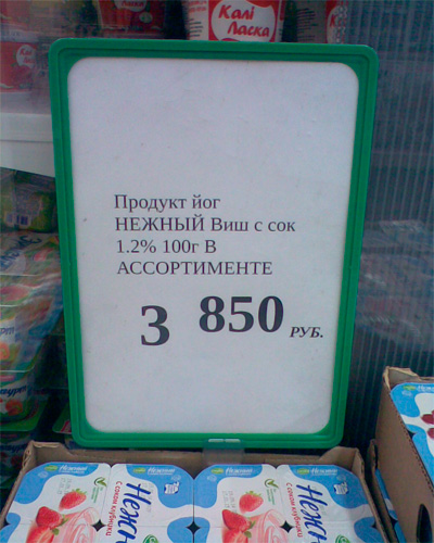 Буквы надо экономить, считает Руслан, их количество - ограничено. И так же все понятно - нежный йог с вишневый сок.