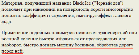 Представляете? Гонитесь вы за боевиками, резко вырываетесь вперед, обрабатываете дорогу перед ними, отстаете - и далее остается только подождать, когда боевики заскользят на льду, как Волочкова по паркету. И бери их тепленькими.