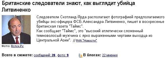 В "Яндекс.Новостях", радуется Слава, составили фотопортрет убийцы Литвиненко. Это высокий, атлетически сложенный темноволосый мужчина с ярко выраженными чертами выходца из Центральной Азии. Вот он, этот гнусный тип: