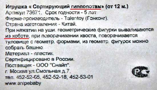 Впрочем, замечает Наташа, в этом случае можно приобрести чудесного сортирующего гиппопотама с хоботом.