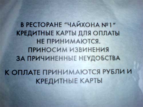 В ресторане "Чайхона", пожаловался Unburn, они сами ни черта не знают, что хотят.
