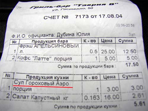 Гриль-бар "Таврия В", радуется Stas, отличается повышенной честностью по отношению к посетителям. Пишут все открытым текстом.