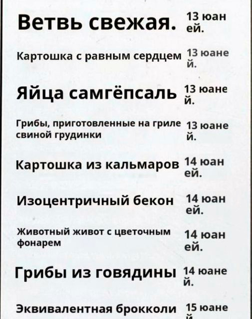 Китайское меню на русском, считает Алекс, это всегда смешно. Но вот эквивалентную брокколи я бы попробовал.