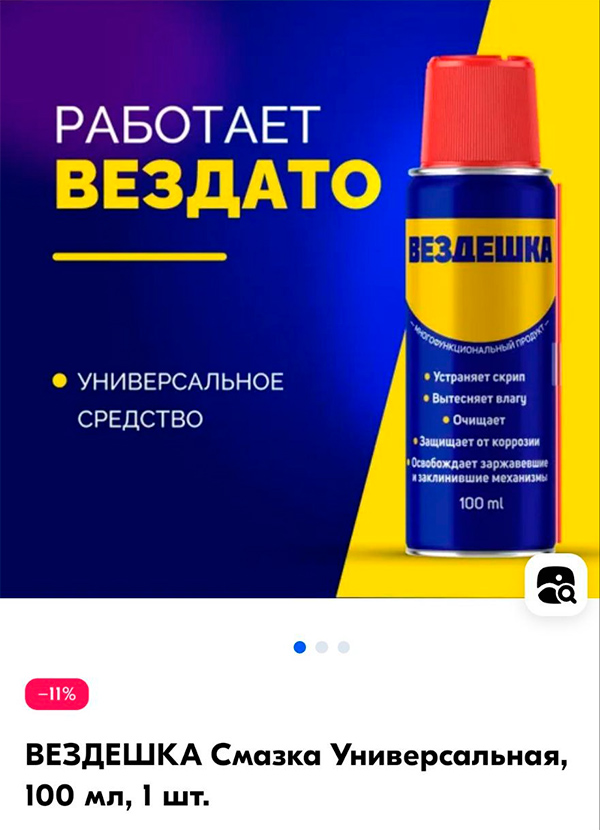"Вездешка" не плохой выход, если нужно было бы сохранить узнаваемость и попытаться избежать претензий оригинального производителя. Только в России я никогда не видел оригинальной WD-40 производства американской компании. Производили все кому не лень и всем было пофиг.