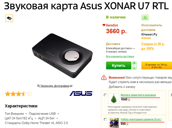 Звуковая карта ASUS, замечает Игорь, служит в несколько раз меньше, если не купить к ней новогоднюю елку и шарики.