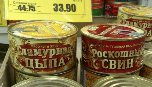 Производители консервов, рассказал Олег, решили ориентироваться на бомонд. А то захочет всякое гламурье консервы-то в подъезде навернуть - ну так не пошлой же тушенкой разгоняться. Так что теперь - все для них! Гламурная цыпа, роскошный свин, волнительный баран, изысканные хрящи, эффектная индейка, величественный лось - все для бомонда. Да и продается это все, как полагается, в "Пятерочке".